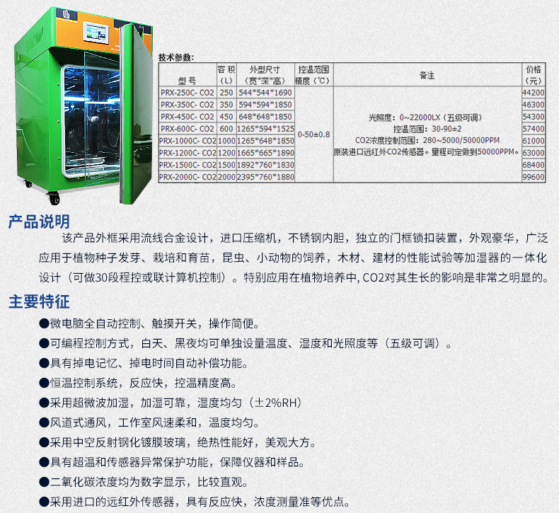 二氧化碳人工氣候箱產品介紹: