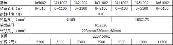 稱量:510(g) 顯示值:0.01g 規格:電子天平JA5002